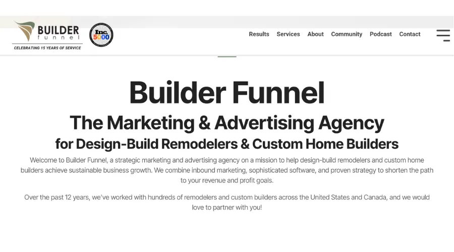 Both agencies work within construction and home services, but their positioning differs. Builder Funnel has historically leaned heavily into remodeling and design build firms. Their messaging often centers around marketing systems and brand storytelling.