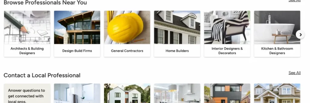 Houzz has a massive advantage in terms of SEO. With millions of indexed pages, professional profiles, and project photos, it dominates search results for a wide range of home improvement and design-related queries. Contractors with active Houzz profiles often find themselves ranking higher on Google than they could on their own websites.
